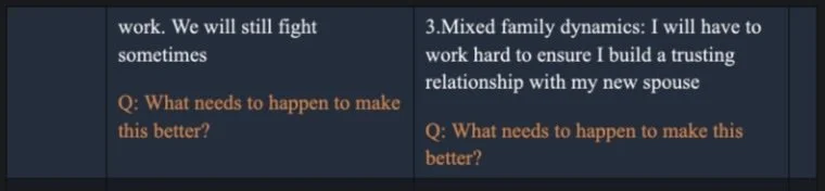 If possible, ask your spouse to do the same exercise in step 2A and 2B so you can understand his/her point of view. This step might also be done preferably with a counselor.